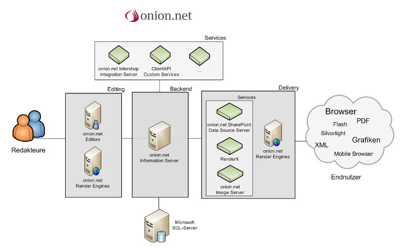 Der onion.net Editor ist eine Benutzeroberfläche zur Erfassung und Verwaltung von Informationen. Darüber hinaus dient er als Entwicklerwerkzeug für das XML Schema-basierte Typsystem, ermöglicht die Verwaltung aller Templates der onion.net Render Engine und bietet Werkzeuge für das Rechtemanagement. Der Editor selbst läuft auf Ihrem Arbeitsplatzrechner im Webbrowser, ohne dass Sie irgendwelche spezielle Software installieren. Die dafür erforderlichen Dienste werden auf Basis von ASP.NET zentral bereitgestellt.