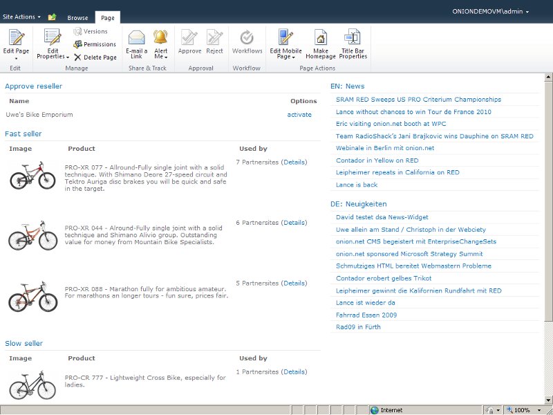 Based on security and performance arguments most organizations prefer to use separated platforms and different specialized software products to run their intranet and their public websites. This, however, is a handicap for "straight-through" processes and a smooth flow of information. SharePoint, the platform for Intranet collaboration and onion.net, the professional web content management system, do complement each other in an ideal way.