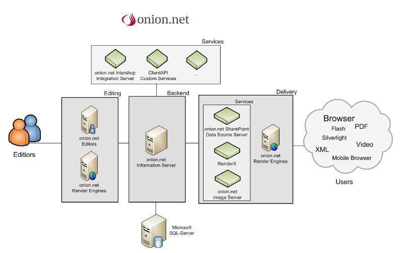 - The onion.net render engine is the central transformation tool for information utilisation, e.g. the output of a website